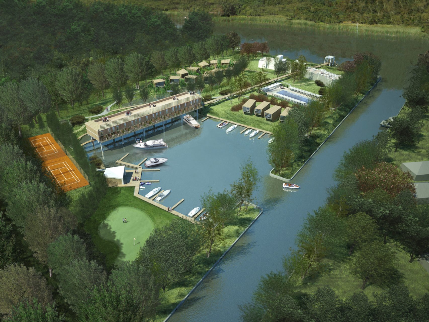Hotel, restaurant, pool, moorings and services