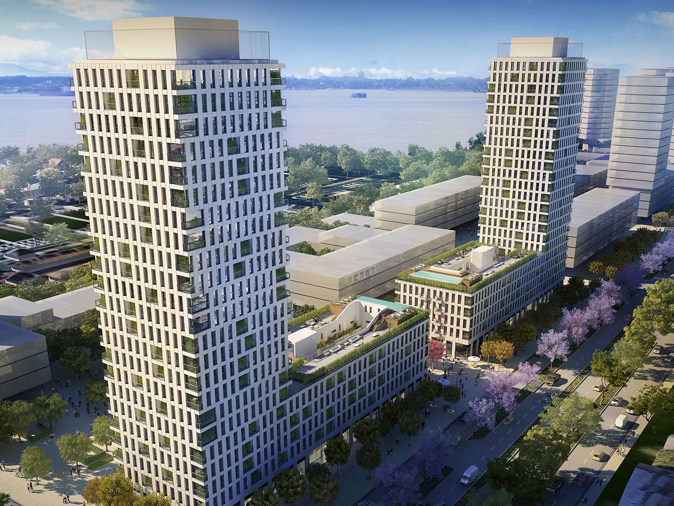 Emplazado en un Master Plan de Foster & Partners el programa resulta en un conjunto de dos torres con vistas al río Paraná y un basamento con patios interiores y comercios sobre un paseo peatonal