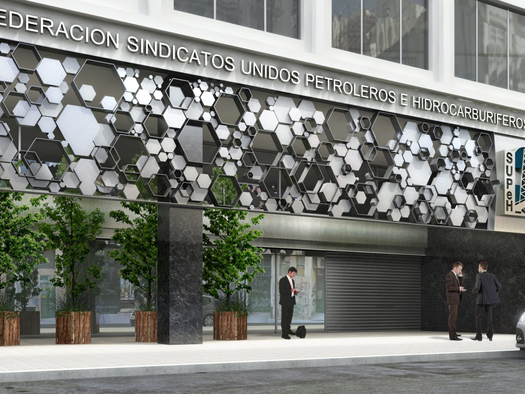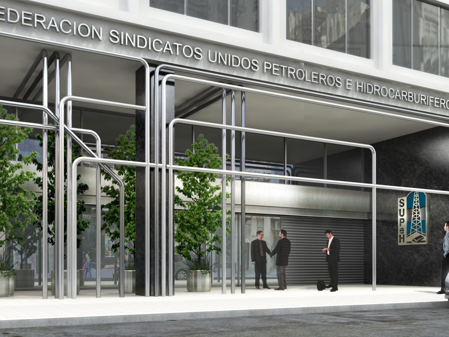 Se interviene la fachada con el finde modernizar la imagen de la Sede central del sindicato y se re funcionaliza el auditorio para configuraciones de uso más contemporáneo. Se incorpora en este espacio la luz natural que proviene de la Plaza Roberto Arlt lindera a uno de los laterales del edificio.